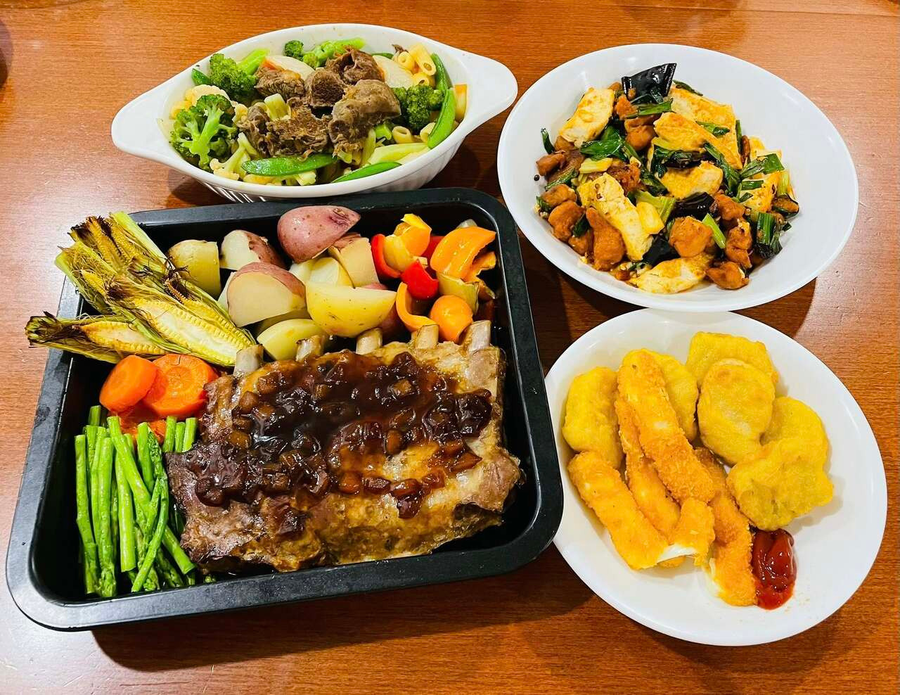 玉米筍、甜椒、紅蘿蔔、蘆筍⋯⋯再淋上蜂蜜蘋果醬,裡面還有蘋果顆粒喔!一端上桌,大家眼睛都亮了![]()