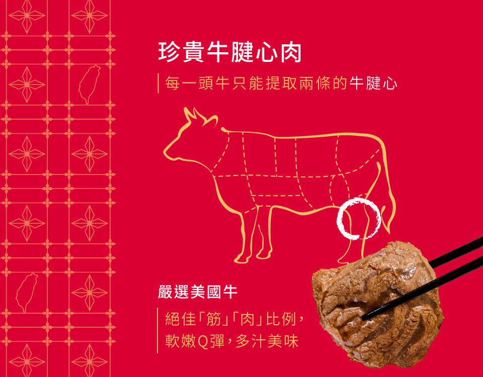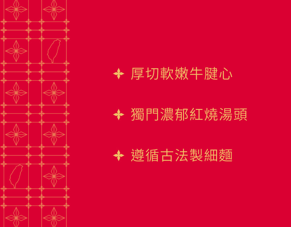 厚切軟嫩牛腱心x獨門濃郁紅燒湯頭x遵循古法製細麵