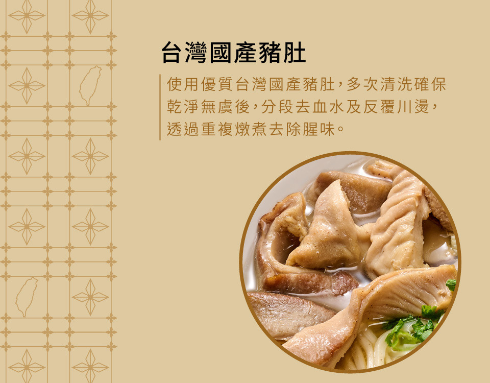辛香溫潤湯頭x彈嫩豬肚&軟嫩豬軟骨肉x愛心型細麵